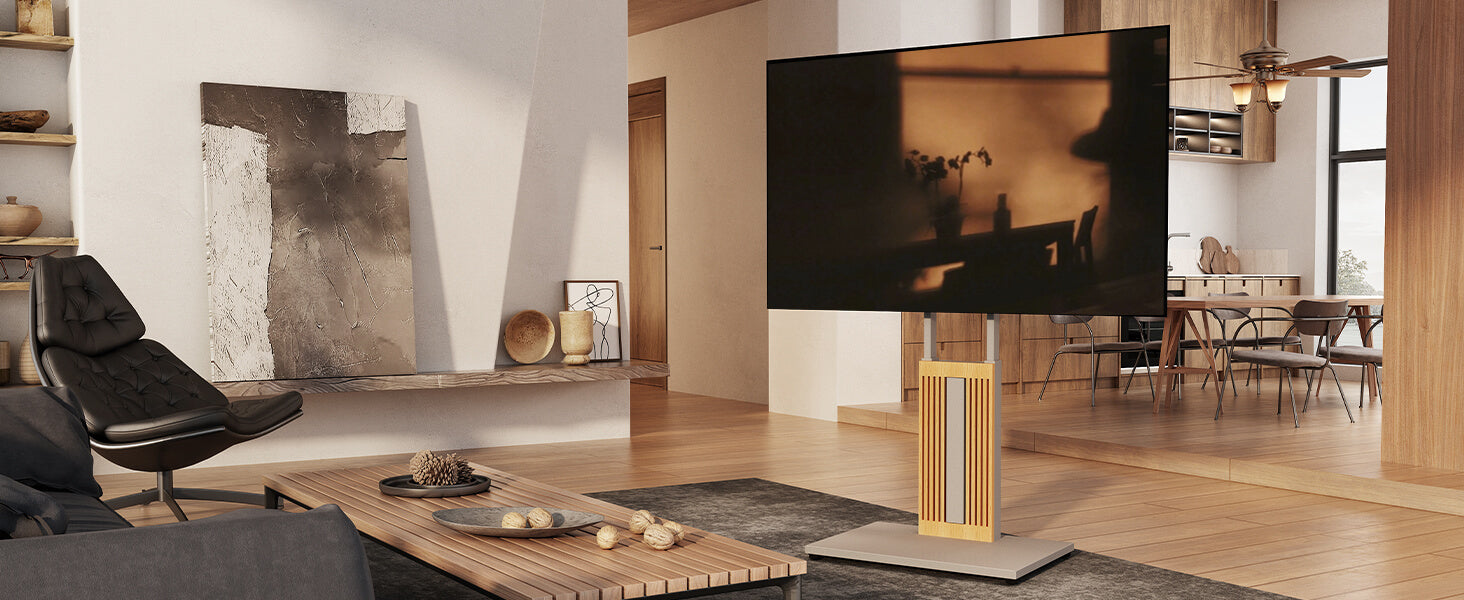 Mit den optional erhältlichen Universalrollen lässt sich der TV-Ständer mühelos im Wohn-, Schlaf- oder Arbeitszimmer bewegen – ganz flexibel je nach gewünschter Blickrichtung oder Nutzungssituation.