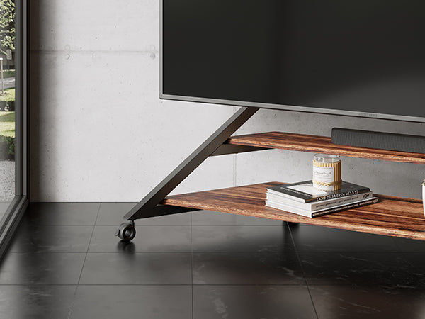 Ce support TV est équipé de roulettes. Brisez le poids encombrant du meuble TV traditionnel et les contraintes du support mural TV, vous pouvez profiter de vos programmes télévisés partout.