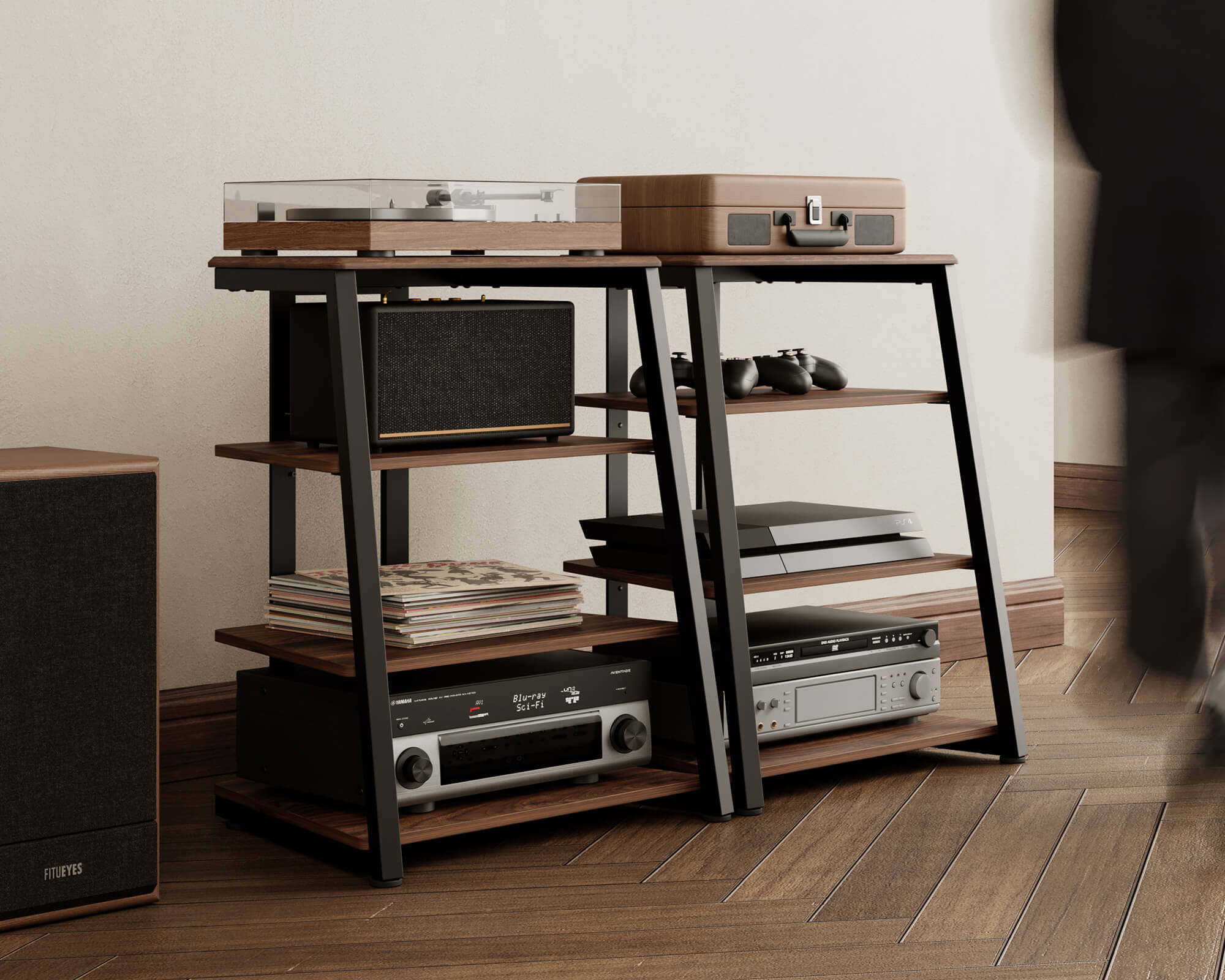 "Il supporto è progettato in modo aperto, il che garantisce una buona circolazione dell'aria e raffreddamento e facilita l'accesso ai tuoi componenti. A differenza della maggior parte dei rack AV chiusi, questo design robusto assicura che i tuoi dispositivi siano forniti di abbondante aria circolante, prevenendo il surriscaldamento durante l'uso."