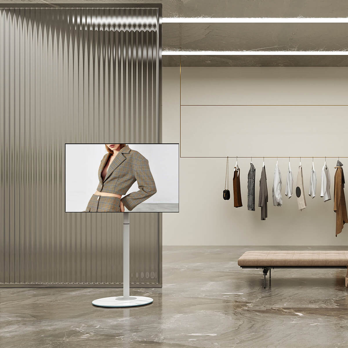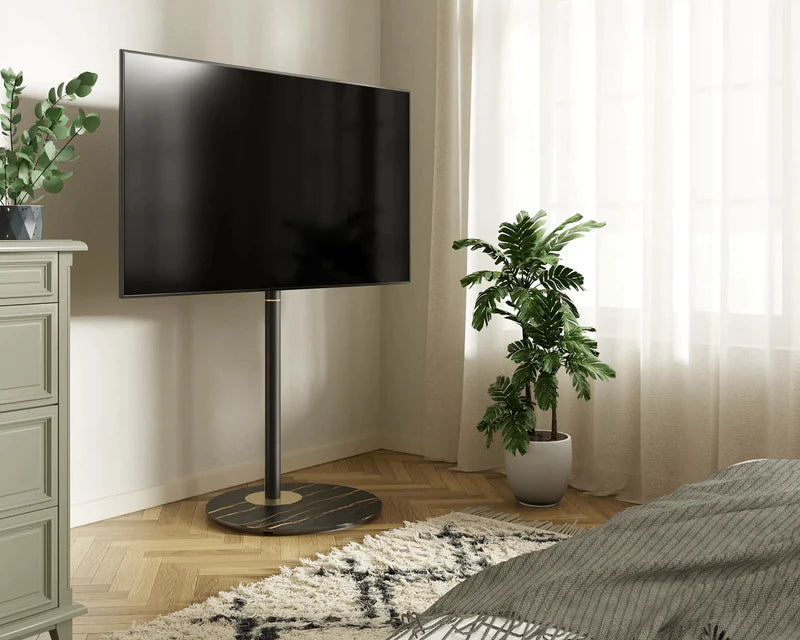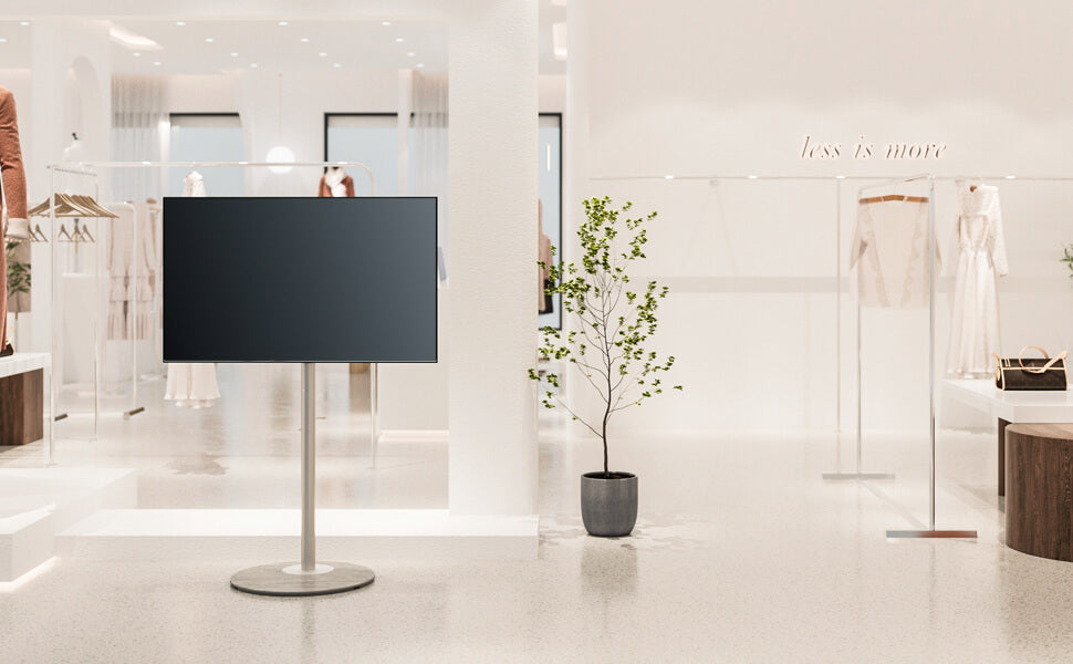 Questo supporto TV ultramoderno rompe lo stereotipo che può essere utilizzato solo in casa. Si adatta perfettamente a studi d'arte, ristoranti eleganti e sale espositive, integrandosi sorprendentemente nel loro design d'interni.