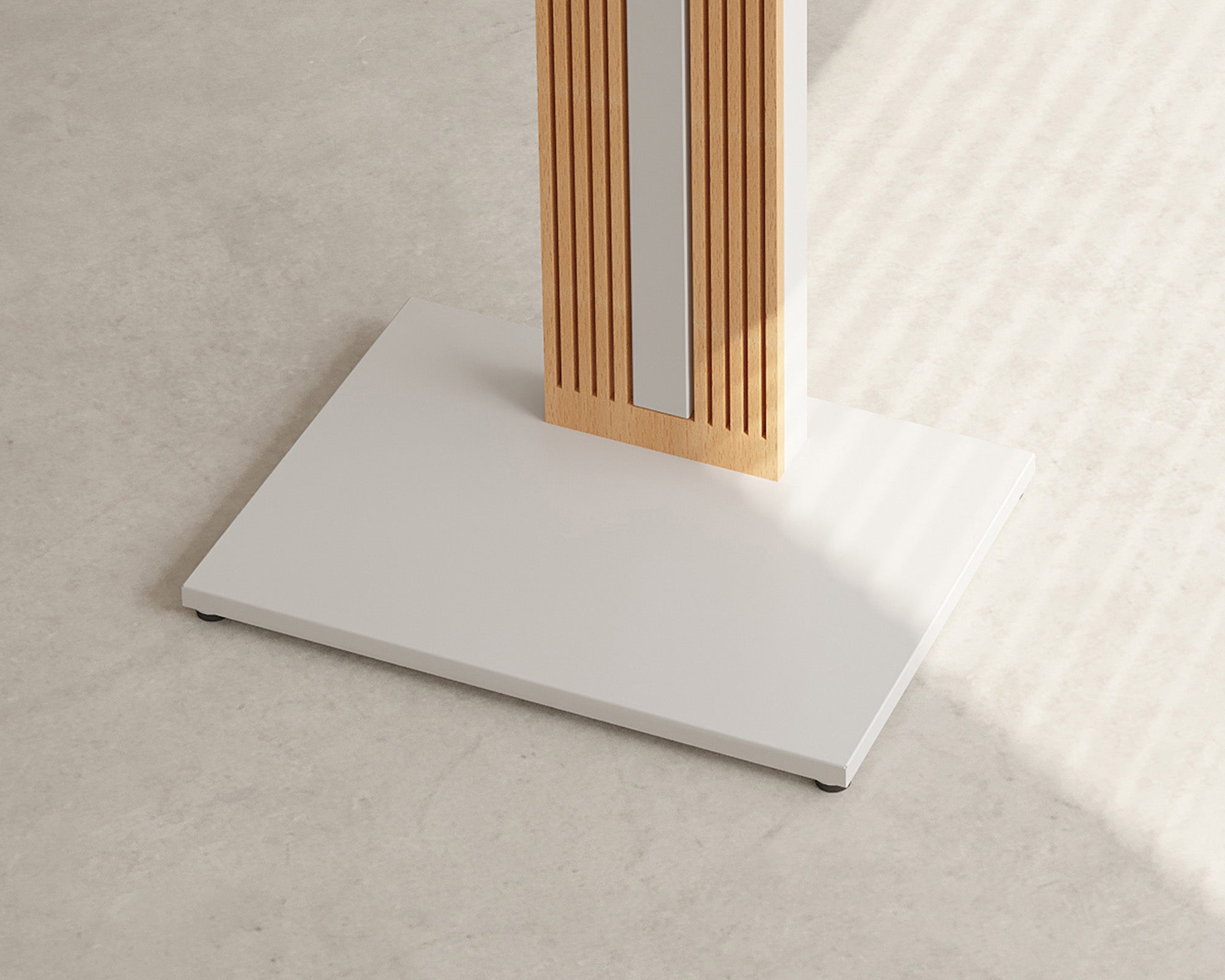 La base è dotata di piedini regolabili, ideali per adattarsi a diversi ambienti d’uso, anche quelli più complessi. I piedini sono realizzati in un materiale antiscivolo e antigraffio, che protegge efficacemente il pavimento.